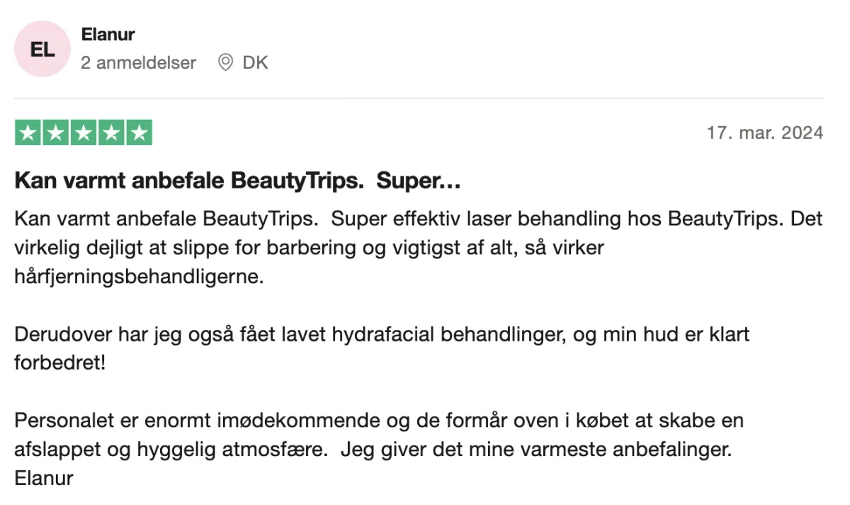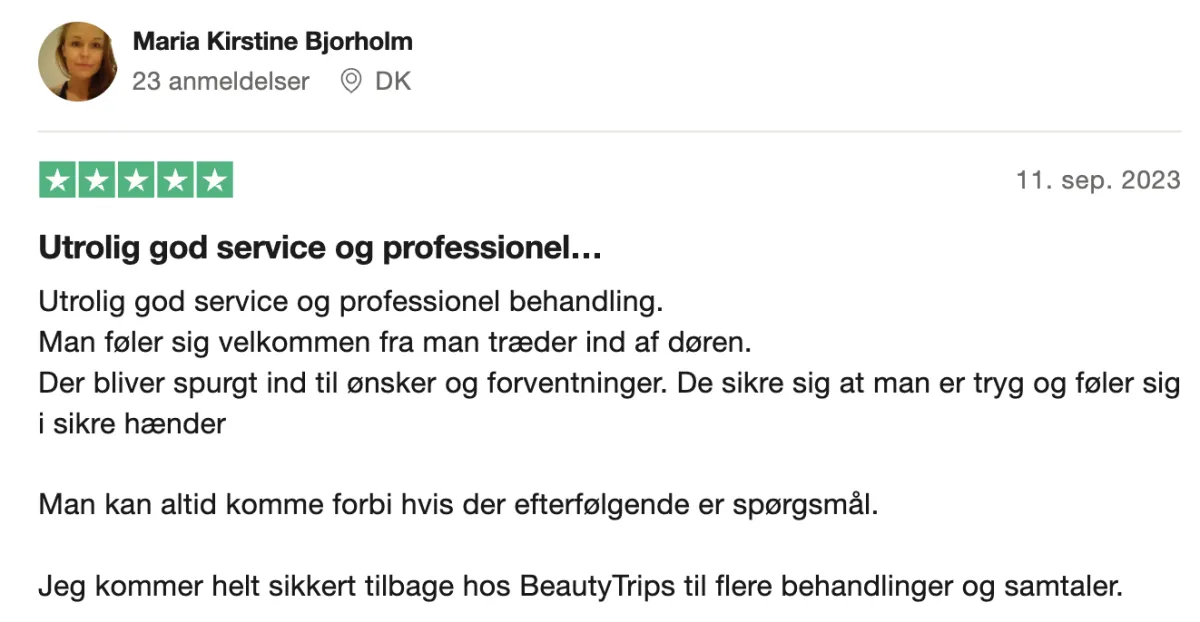 Hos BeautyTrips er vi dedikerede til at fremhæve din naturlige skønhed med skræddersyede behandlinger i en afslappende og luksuriøs atmosfære. Beliggende i hjertet af København tilbyder vores kosmetiske klinik førsteklasses behandlinger, der passer til dine behov, herunder hudpleje, microneedling, laserhårfjerning og meget mere. Oplev selvforkælelse på højeste niveau med vores dygtige team af professionelle. Lad os hjælpe dig med at se og føle dig fantastisk!